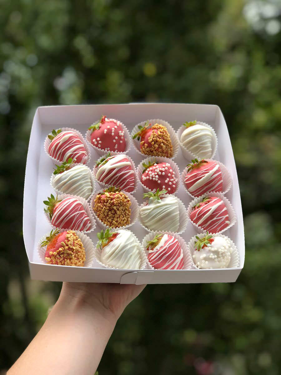 Необычайно классная коробочка из 16 клубник политые бельгийским шоколадом марки — Callebaut