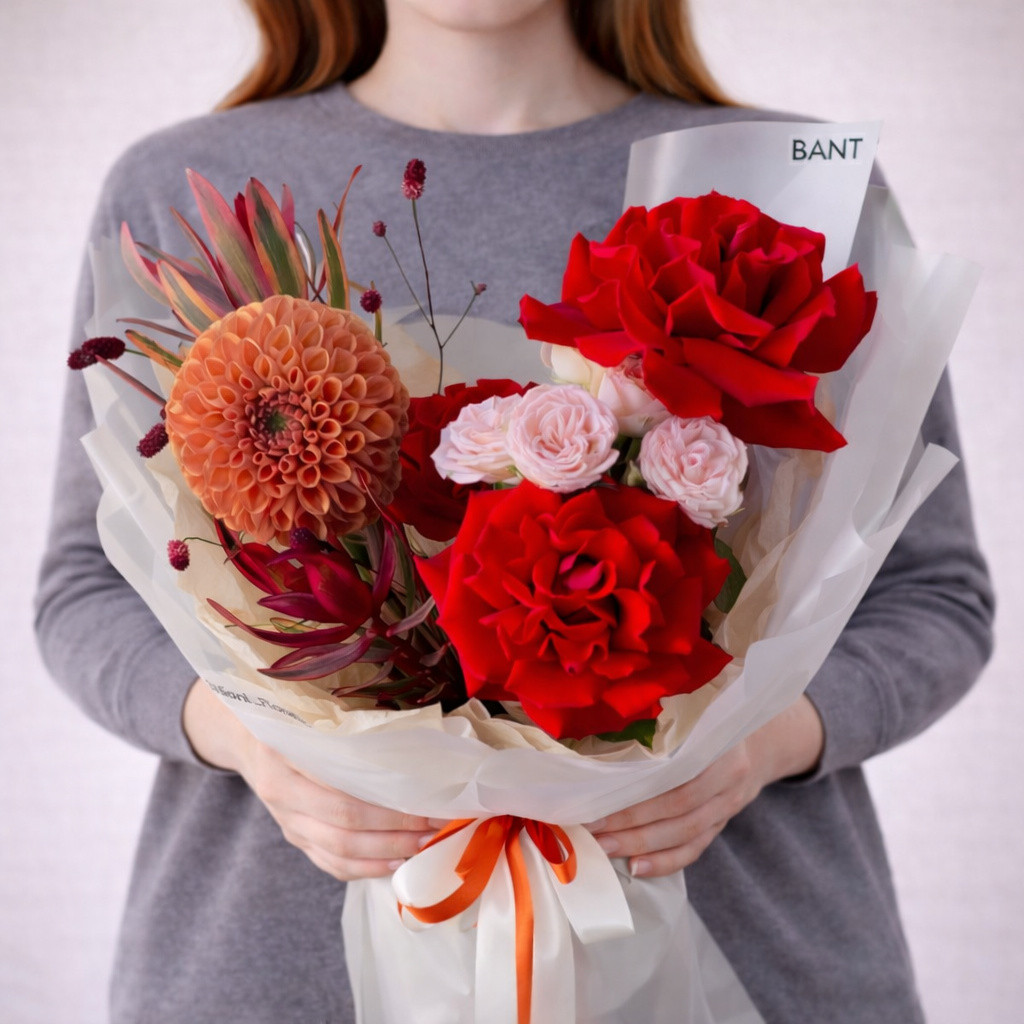 Каждый букет собирает флорист вручную под конкретный заказ. Не используем шаблонные композиции — только индивидуальный подбор по стилю и сочетанию оттенков