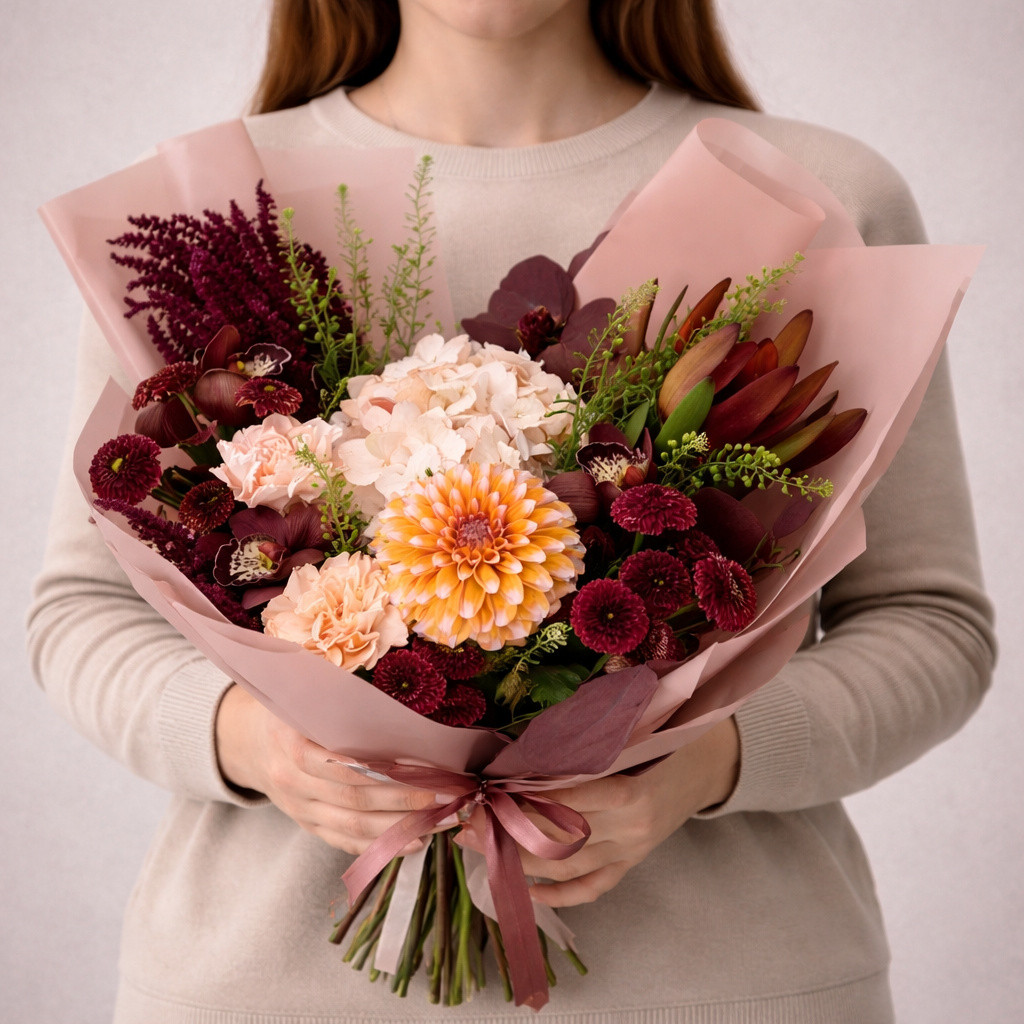 | Состав: | Георгины, Гортензии, Хризантемы |