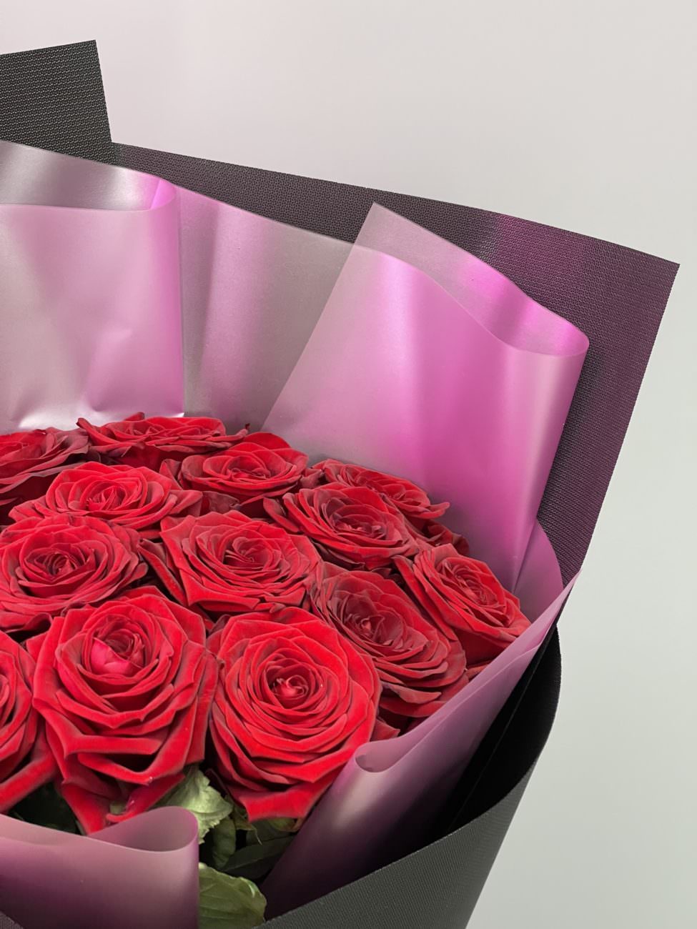 Букет из 15 роз «Артемида» - букет, который привлекает внимание своим уникальным оформлением и необычным цветовым решением