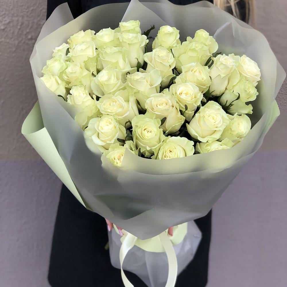 Покупка букета пройдет максимально быстро и просто. Букет из 31 белой розы ждет вас: добавьте его в корзину, заполните заявку, а затем укажите точный адрес доставки. После этого вы можете позвонить нам или подождать звонка менеджера. Мы успеем привезти букет в Черногорске за 2–3 часа, курьер уведомит вас о ходе заказа.