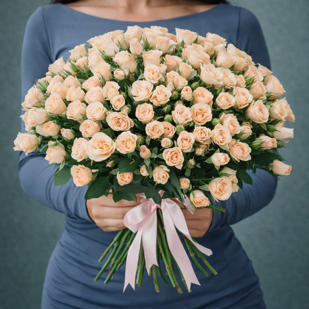 Букет «Персиковое облако нежности» — это воздушная композиция из изящных кустовых роз мягкого персикового оттенка. Нежные бутоны создают ощущение тепла, уюта и искренней заботы. Такой букет выглядит утончённо и романтично, наполняя пространство светлой гармонией и спокойствием. Идеальный выбор для трогательного признания, благодарности или душевного подарка без повода.
