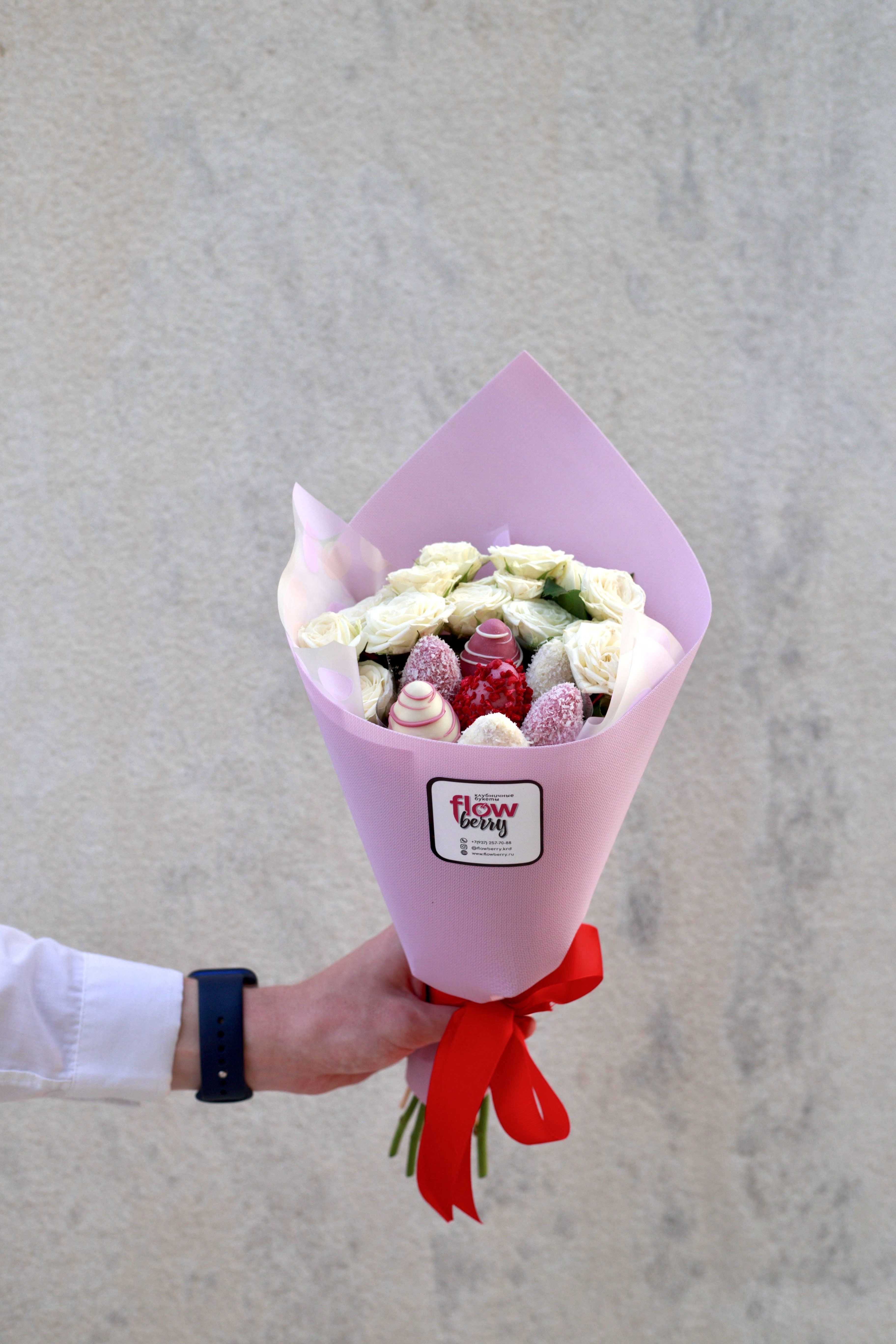 Спасибо за отличный клубничный букет на юбилей! Хорошо сработали!