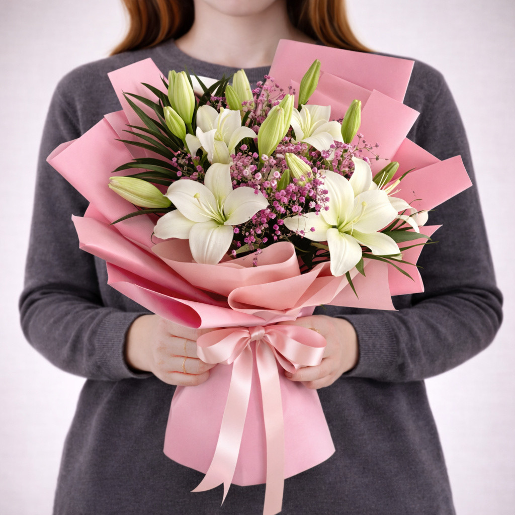 | Состав: | Гипсофила, Лилии |