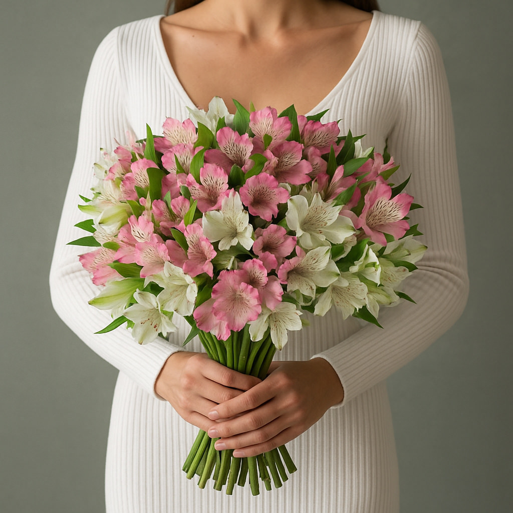 Очаровательный букет из альстромерий в бело-розовой гамме.