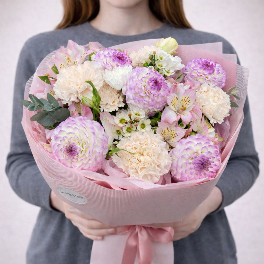 | Состав: | Альстромерии, Гвоздики, Георгины |