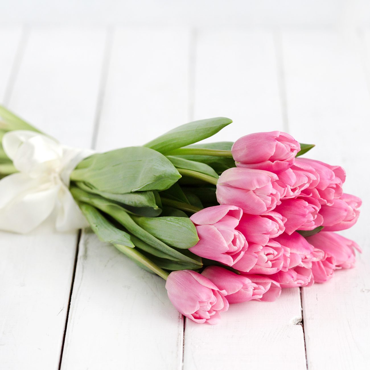 Букет розовых тюльпанов под ленту — 15 штук