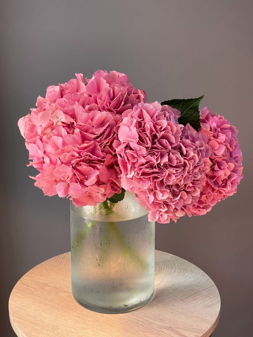 Гортензия розовая - букет, который прекрасно демонстрирует баланс между упаковкой, стилем и свежестью бутонов