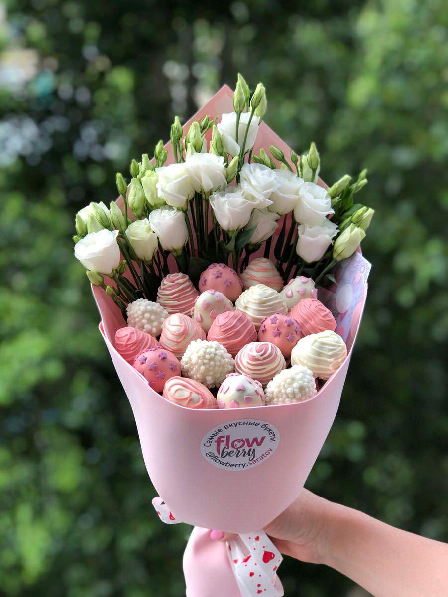 !Возможна замена на белую кустовую розу, если эустомы не будет в наличии.