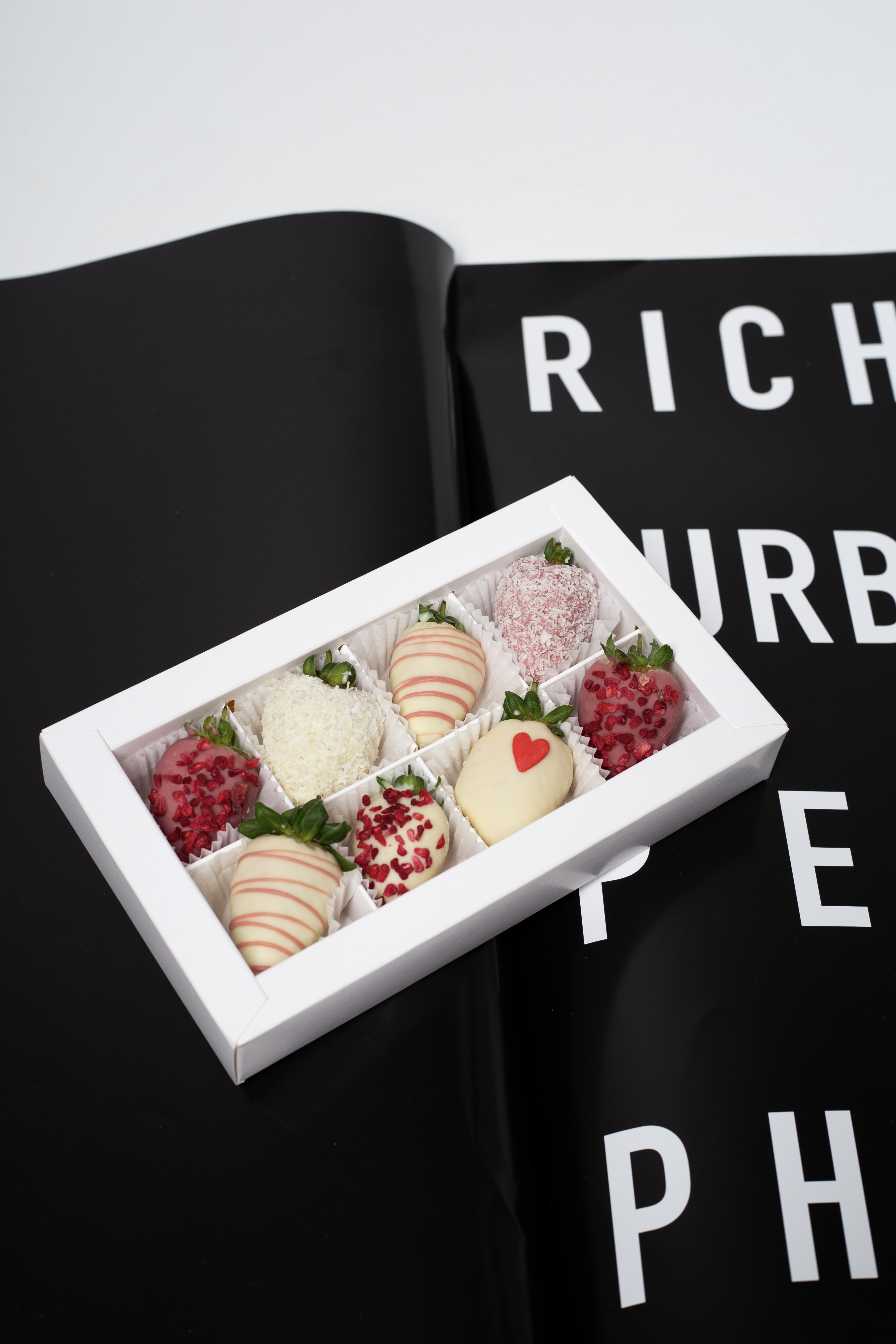 Клубничная коробочка «Мелодия» - букет, который обладает исключительной эстетикой благодаря своему оформлению и цветовой палитре