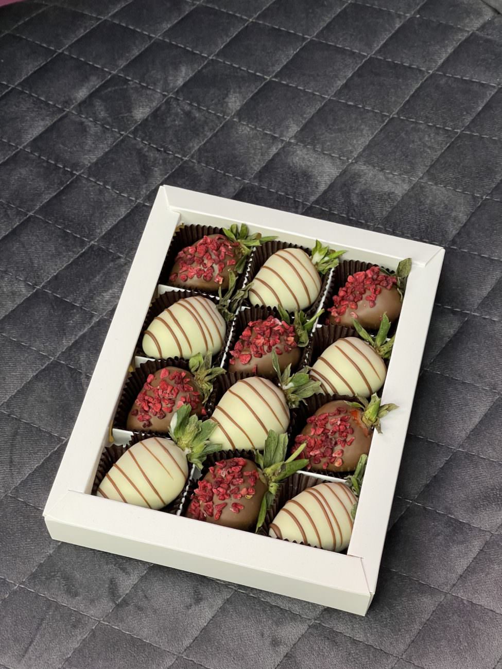 Клубничный набор «Валенсия» - букет, который оформлен с особым вниманием к деталям, что придает ему неповторимый шарм