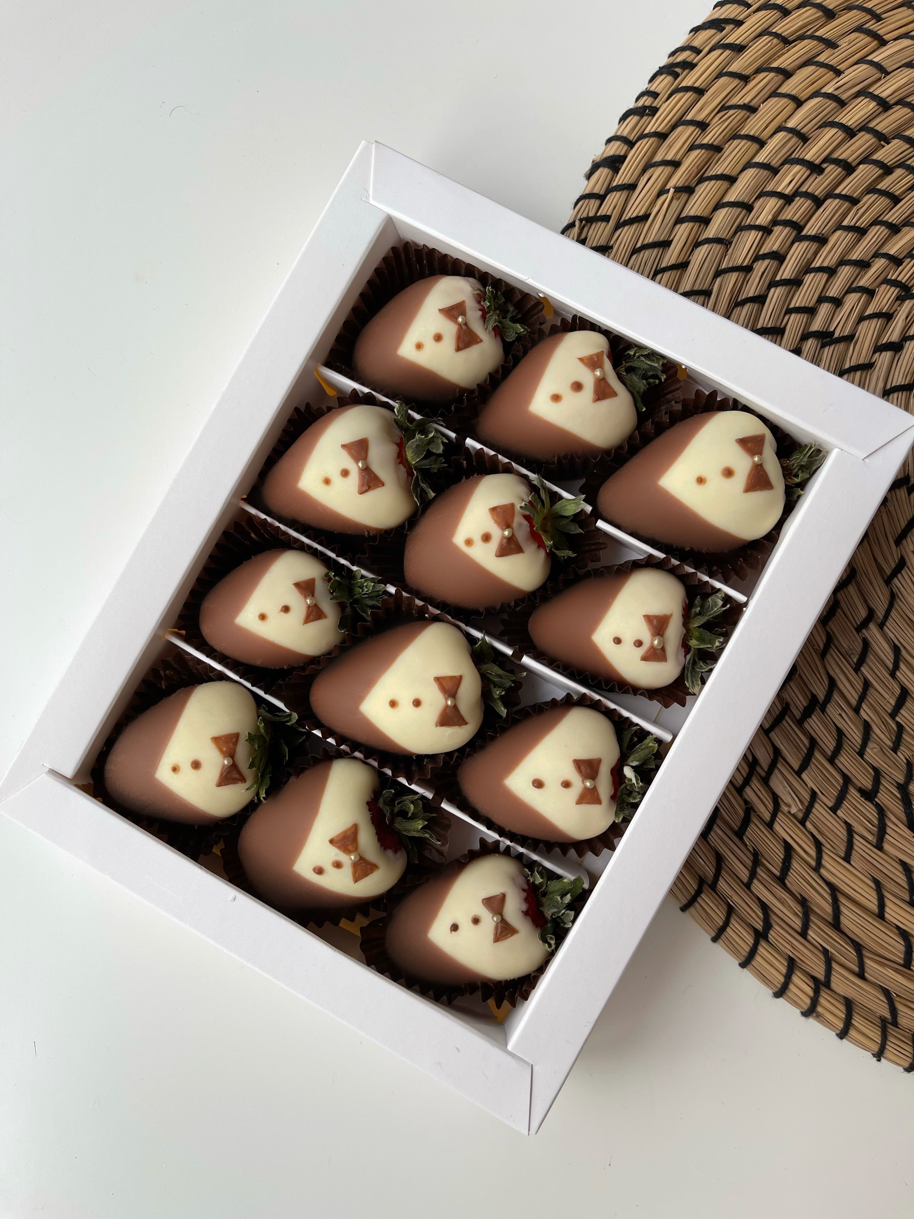 Клубника в смокинге 12 шт. - букет, который раскрывает всю свою прелесть благодаря тщательно подобранному оформлению и упаковке