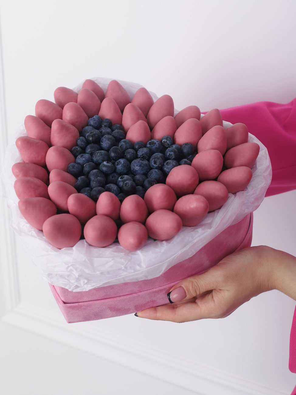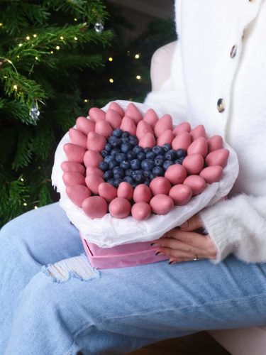 Коробка с клубникой «Ягодное сердце» - букет, который сохраняет свою грацию благодаря элегантному стилю