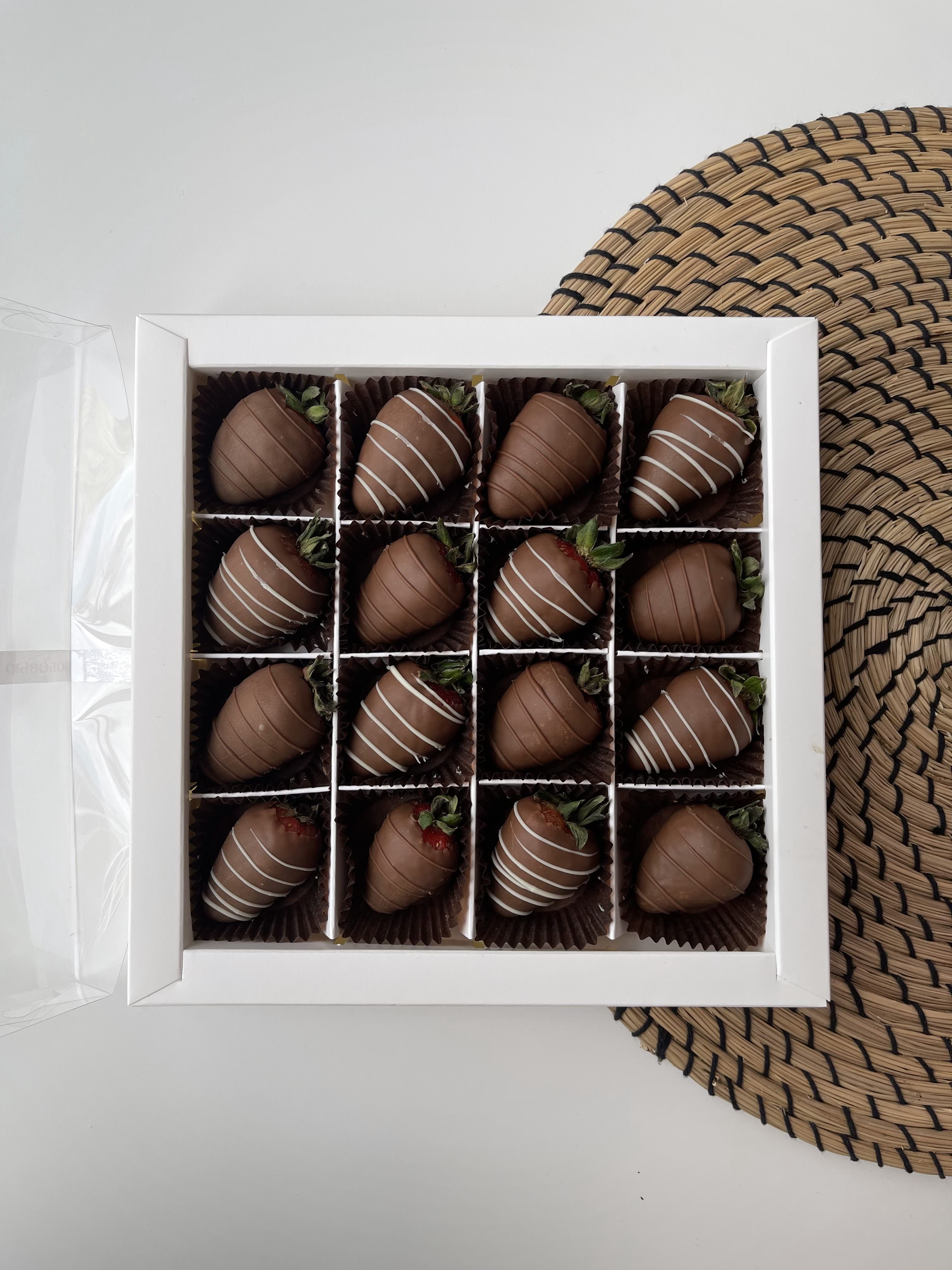 Коробочка клубники 16 шт. «Молочный набор» - букет, который сочетает в себе идеальную упаковку и выразительный стиль композиции
