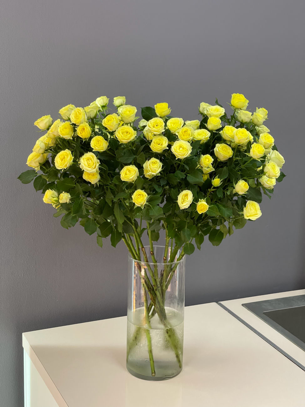 Роза лимонная - букет, который идеально оформлен, что подчеркивает естественную красоту всех бутонов