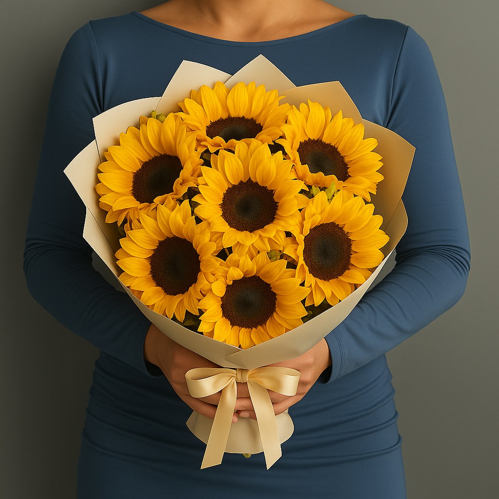 Яркий букет подсолнухов — воплощение радости, солнечного света и тепла. Эти жизнерадостные цветы создают атмосферу уюта и искреннего счастья. Такой букет станет идеальным подарком для поднятия настроения, на день рождения, юбилей, романтический сюрприз или в знак благодарности. Подсолнухи подчеркнут ваши чувства и подарят яркие эмоции.