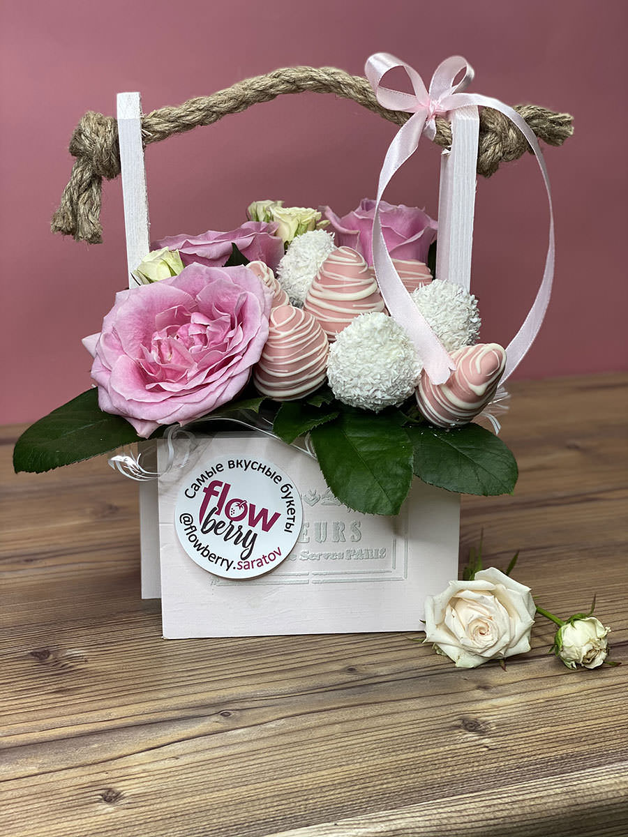 Ягода в шоколаде «Ящик счастья» - букет, который обретает завершенный вид благодаря стилю оформления и элегантной упаковке